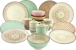 CreaTable 20310 Kombiservice Mandala Für 4 Personen, Steinzeug, Mehrfarbig (1 Set, 16-teilig)